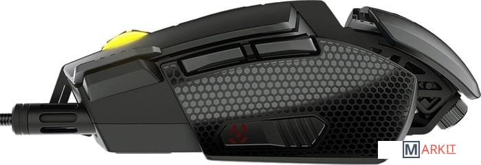 Данная мышь оборудована регулируемым упором для смены хвата. Оснащена переключателями Omron с ресурсом прочности в 50 млн. нажатий. Максимальное ускорение 50G. Максимальная скорость передвижения до 400 дюймов/сек.