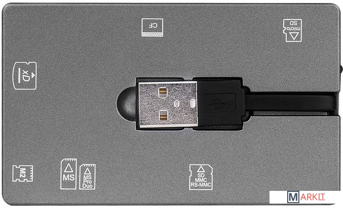 Поддержка карт (без адаптера) CompactFlash, SD, SDHC, microSD, microSDHC, miniSD, Memory Stick, Memory Stick Duo, Memory Stick Micro M2, Memory Stick PRO, Memory Stick PRO Duo, MMC, RS-MMC, xD